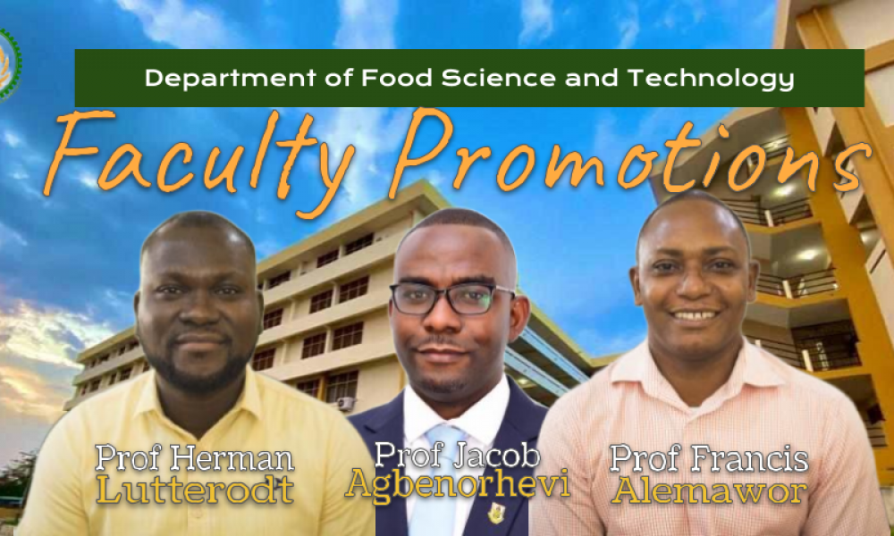 The Department of Food Science and Technology at Kwame Nkrumah University of Science and Technology (KNUST) is pleased to announce the promotion of three of its faculty members, recognizing years of dedicated service, scholarly excellence, and sustained contributions to teaching, research, and institutional leadership.